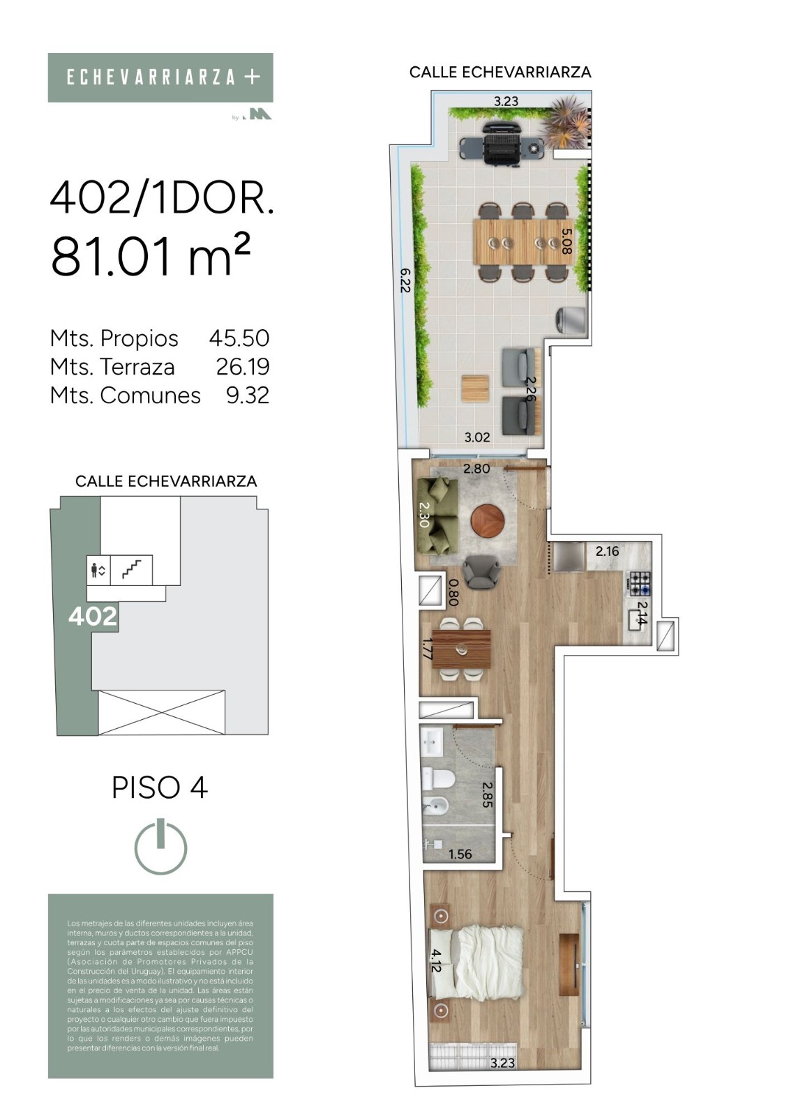 ECHEVARRIARZA + es un innovador emprendimiento ubicado en la cotizada calle Echevarriarza 3380, en el corazón de Pocitos Nuevo, Montevideo. Con un total de 19 unidades, este proyecto se distingue por su diseño contemporáneo y su enfoque en la comodidad y funcionalidad. Cada departamento está equipado con aire acondicionado y cuenta con acceso a un ascensor, garantizando una experiencia de vida moderna y accesible.
